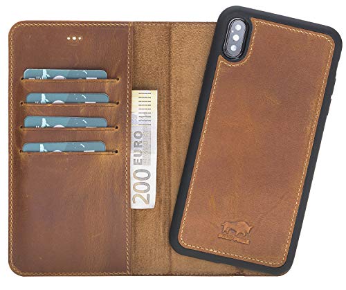 Solo Pelle iPhone XS Max 6.5 Zoll abnehmbare Lederhülle (2in1) in Camelbraun inkl. Kartenfächer für Das original iPhone XS Max 6.5 Zoll
