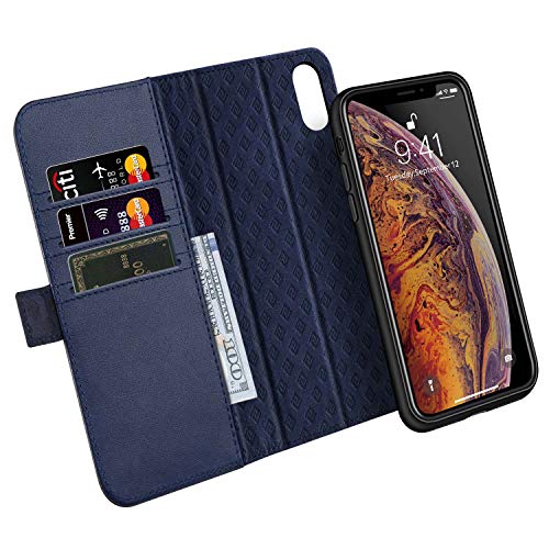 ZOVER iPhone XS Max Hülle Leder Abnehmbare Tasche Echt Geldbörse Lederhülle Unterstützt kabellose Laden Schlaf/Wach Kartenfächer Magnetverschlüsse Flip Folio Book Case 6.5" - Marineblau