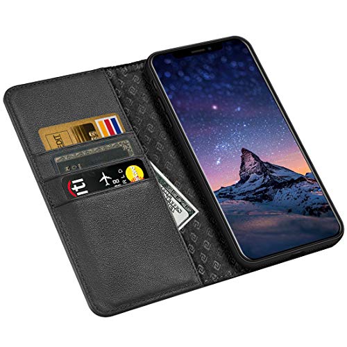 ZOVRE iPhone XS/X Hülle Echt Leder Geldbörse Flip Folio Book Hülle Magnet Kartenfächer Standfunktion Geschenkbox - Schwarz